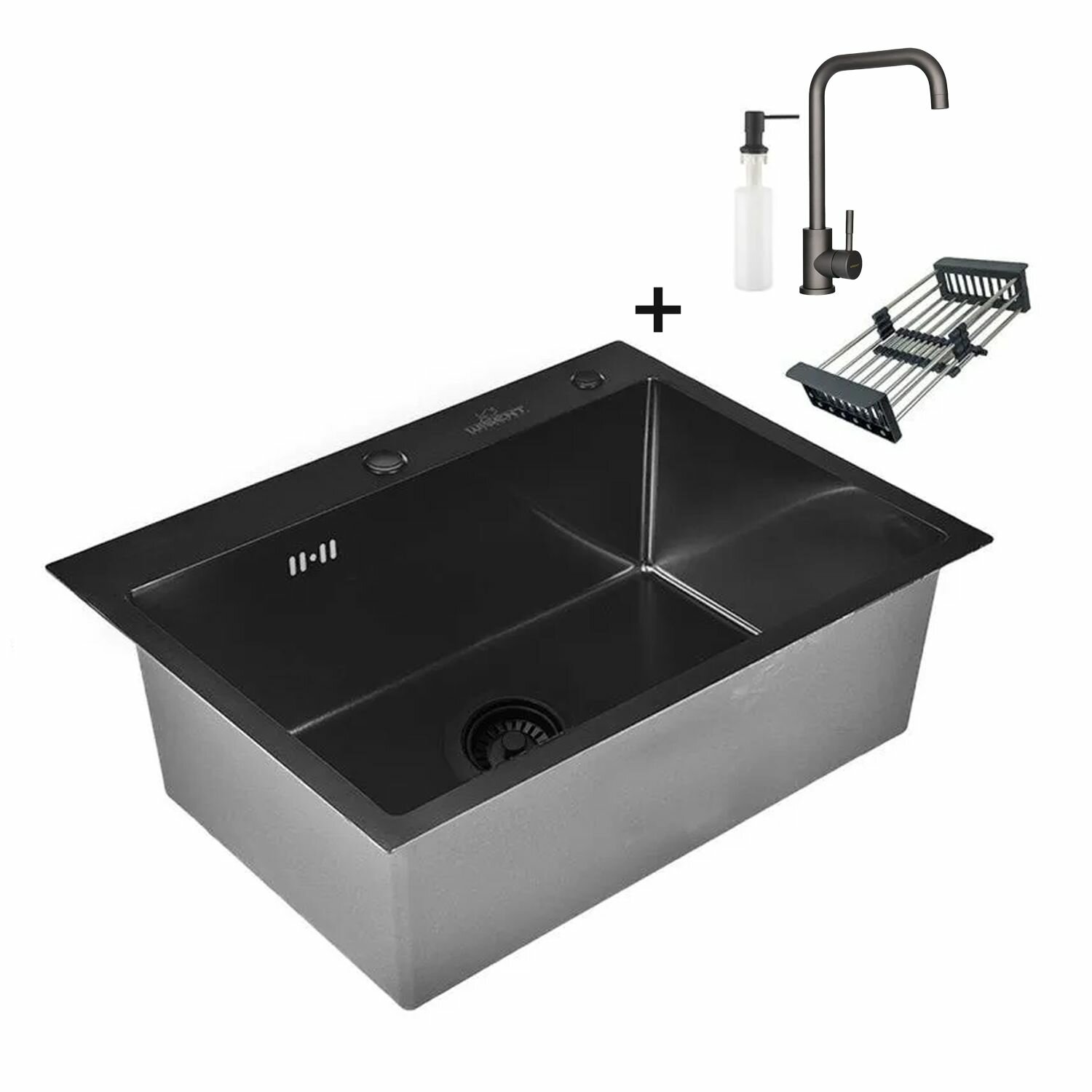 Купить Мойка для кухни нержавеющая 60х50, с PVD покрытием графит. Смеситель, сифон с ситечком, дозатор, коландер. с доставкой по всей России. Мойка для кухни нержавеющая 60х50, с PVD покрытием графит. Смеситель, сифон с ситечком, дозатор, коландер.: сравнение цен, характеристики, фото, актуальное наличие и цены.