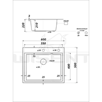 Размеры мойки: 60x50. Размеры чаши: 55x40.