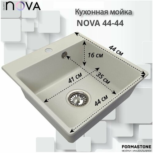 Мойка для кухни каменная квадратная врезная NOVA 44-44 белый: сравнение цен, характеристики, фото, актуальное наличие и цены.