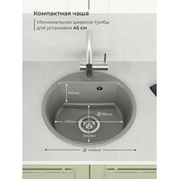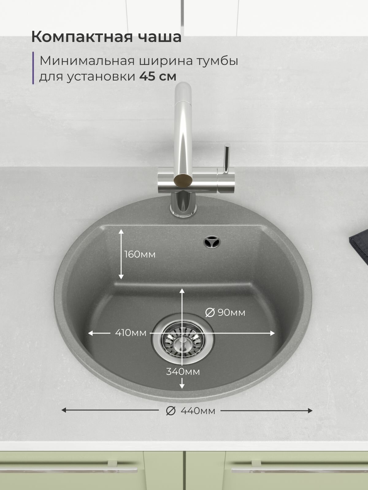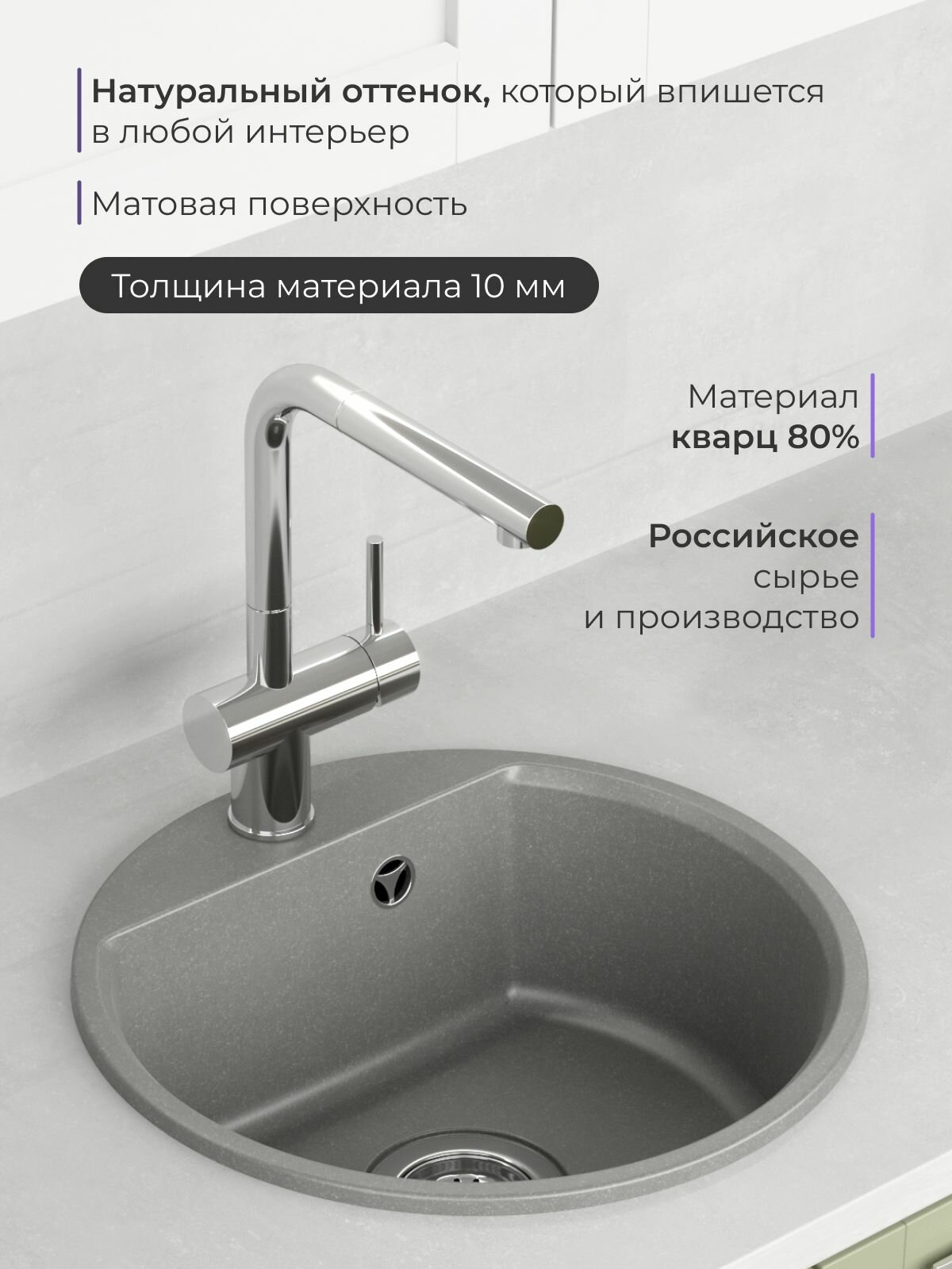 Мойка для кухни NOVA 44, врезная, круглая, серая, кварцевая, матовая, перелив: сравнение цен, характеристики, фото, актуальное наличие и цены.