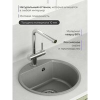 Купить Мойка для кухни NOVA 44, врезная, круглая, серая, кварцевая, матовая, перелив с доставкой по всей России.