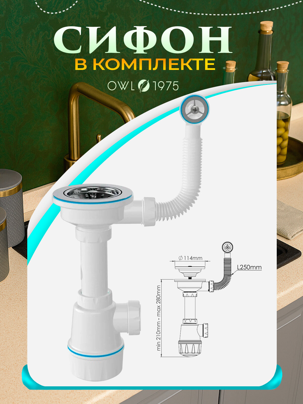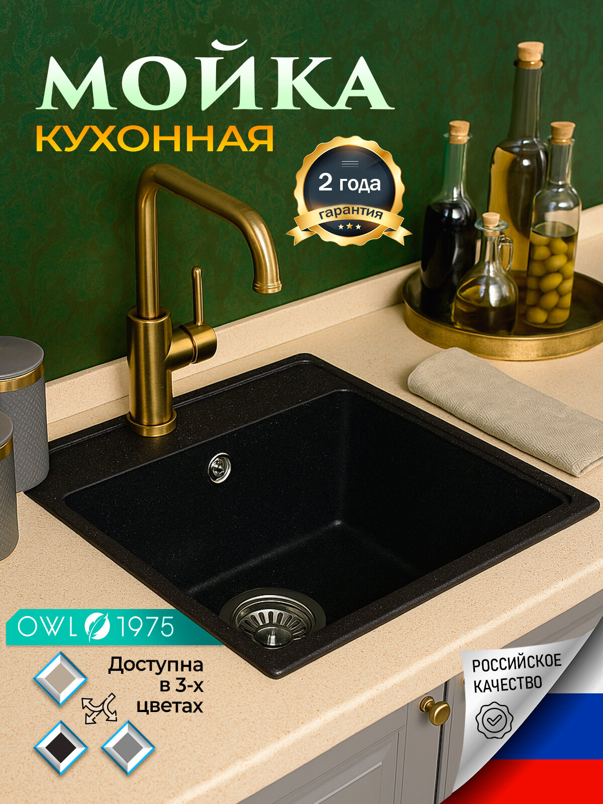 Купить Мойка для кухни OWL 1975 Violeta 450x510x180 искусственный камень (черный) +сифон OW-00094323 с доставкой по всей России.