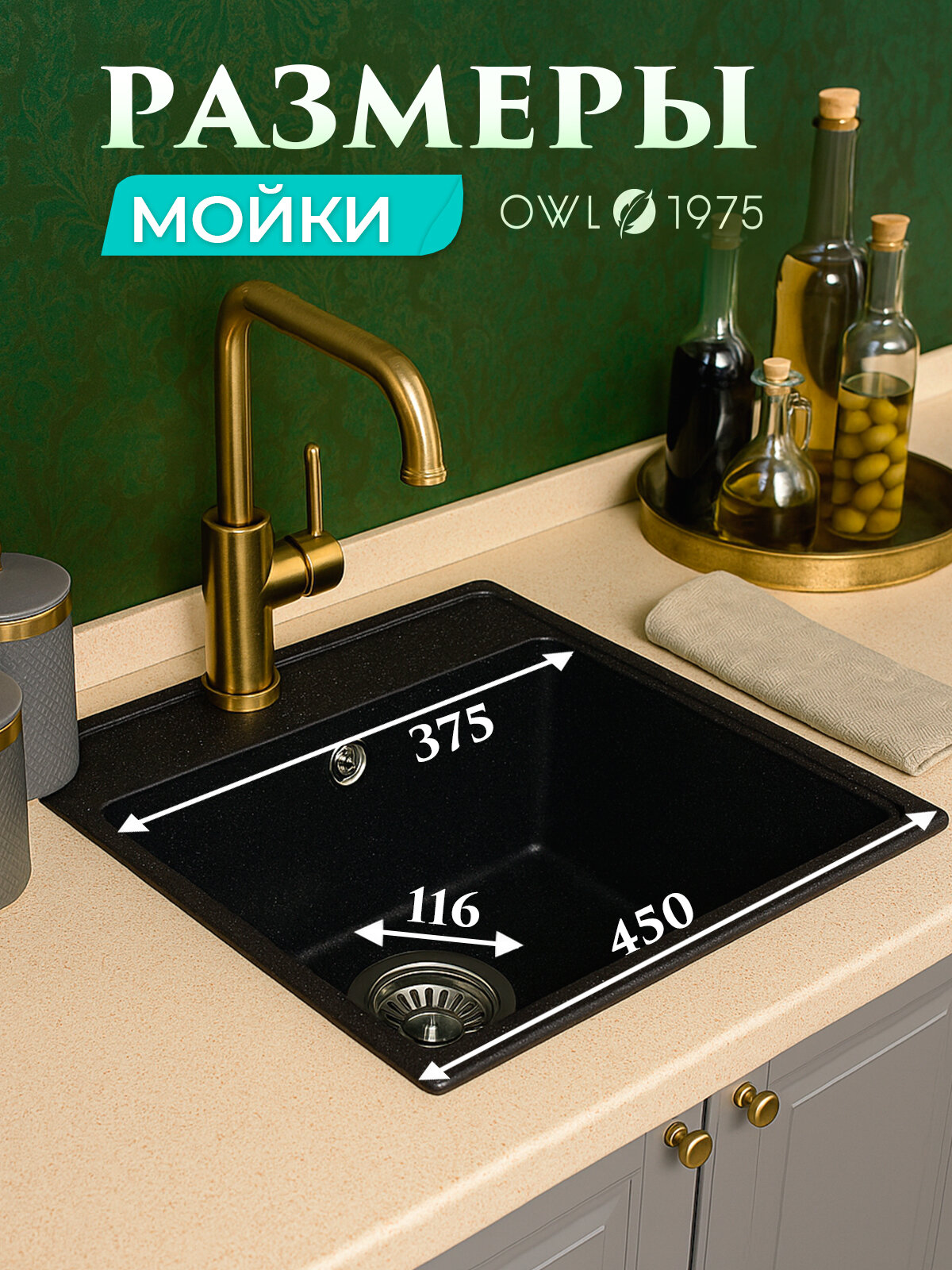 Мойка для кухни OWL 1975 Violeta 450x510x180 искусственный камень (черный) +сифон OW-00094323: сравнение цен, характеристики, фото, актуальное наличие и цены.