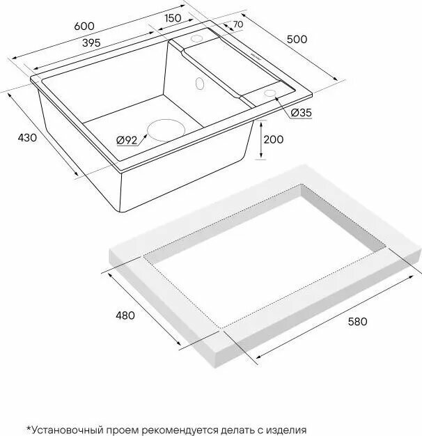 KS-7303U, алюминиум, кухонная мойка, кварц