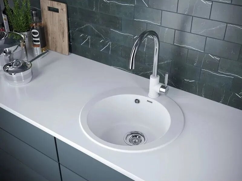 Мойка Gelegen Paulmark – прекрасный вариант для обустройства небольшой кухни. Круглая чаша из искусственного гранита удобна в повседневной эксплуатации. Имеет оптимальную глубину, что предотвращает образование брызг даже при сильном напоре. Непористая поверхность не подвержена развитию патогенной микрофлоры и появлению налета. Оснащена сливом-переливом и корзинчатым вентилем для сбора пищевых отходов. Отсутствует необходимость высверливать отверстие при монтаже смесителя.
