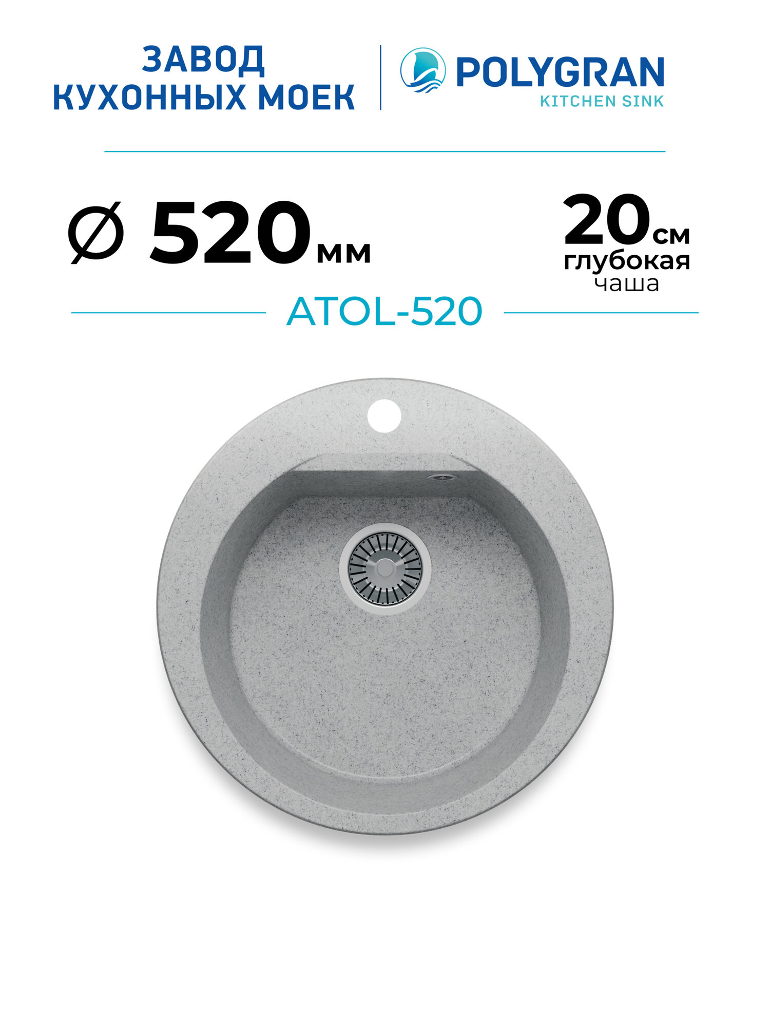 Купить Мойка для кухни каменная POLYGRAN ATOL-520, Серая, Врезная, Круглая (Светло-серый №314) с доставкой по всей России.