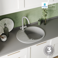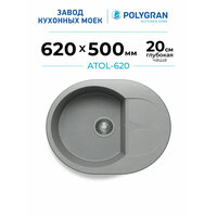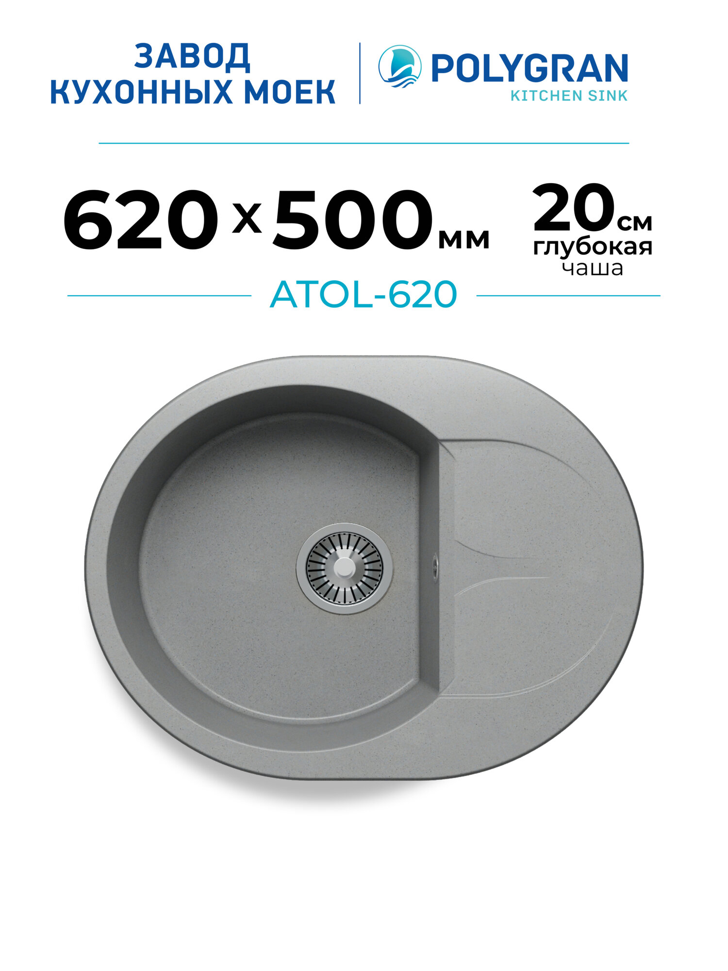 Купить Мойка для кухни каменная POLYGRAN ATOL-620, Серая, Врезная, Круглая, С крылом (Серый №14 ) с доставкой по всей России.