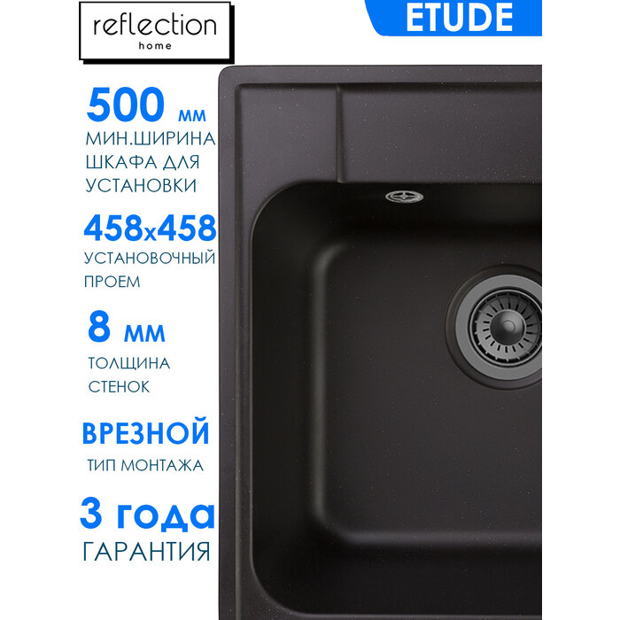 Купить Мойка кухонная Reflection Etude RF0353BL, черная с доставкой по всей России.