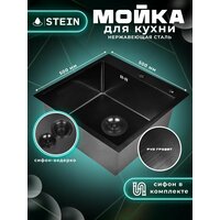 Купить Мойка для кухни STEIN 50х50, нержавеющая сталь, графит с PVD покрытием, с сифоном ведерко ST35050B с доставкой по всей России.