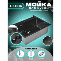 Купить Мойка для кухни STEIN 60х50 из нержавеющей стали, графитовая , с сифоном ведерко, дозатором и коландером ST6050B с доставкой по всей России.