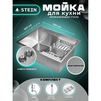 Купить Мойка для кухни STEIN 70х50 из нержавеющей стали, рифленая структура, с сифоном ведерко, дозатором и коландером ST37050D с доставкой по всей России.