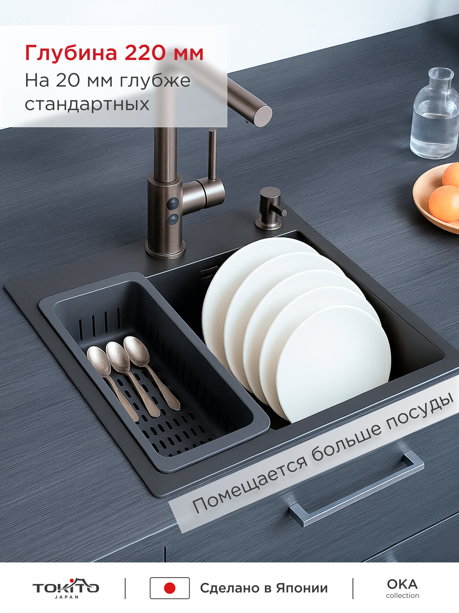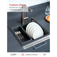 Мойка для кухни TOKITO TOK-OKA-6050-GF из нержавеющей стали графит врезная 60х50 см 220 мм: сравнение цен, характеристики, фото, актуальное наличие и цены.