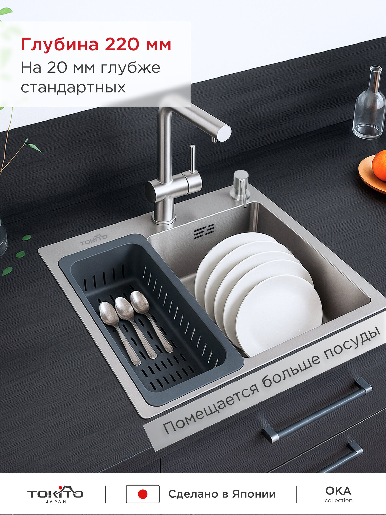 Мойка для кухни TOKITO TOK-OKA-6050-ST из нержавеющей стали врезная 60х50 см глубина 220 мм: сравнение цен, характеристики, фото, актуальное наличие и цены.
