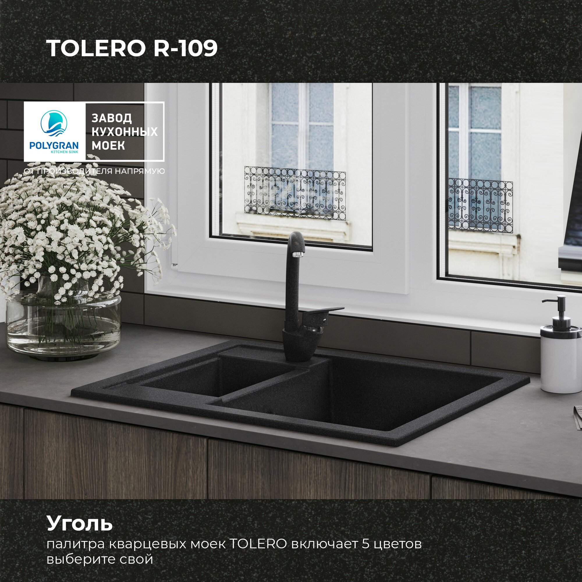 Купить Мойка для кухни кварцевая TOLERO CLASSIC R-109, Черная, Врезная, Каменная, Квадратная, С крылом, 2 чаши (Уголь) с доставкой по всей России. Мойка для кухни кварцевая TOLERO CLASSIC R-109, Черная, Врезная, Каменная, Квадратная, С крылом, 2 чаши (Уголь): сравнение цен, характеристики, фото, актуальное наличие и цены.