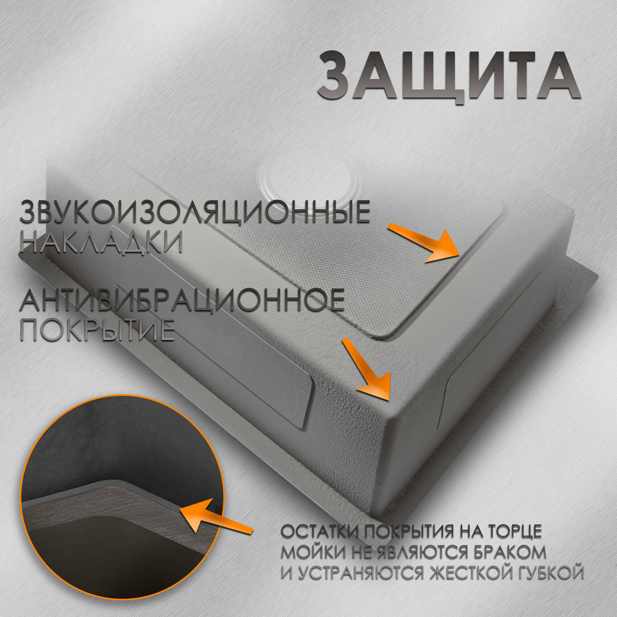 Антибактериальное PVD-покрытие раковины предотвращает размножение бактерий и обеспечивает гигиеничность использования. Покрытие легко очищается от загрязнений с помощью губки, а на нем не заметны разводы и следы от воды.