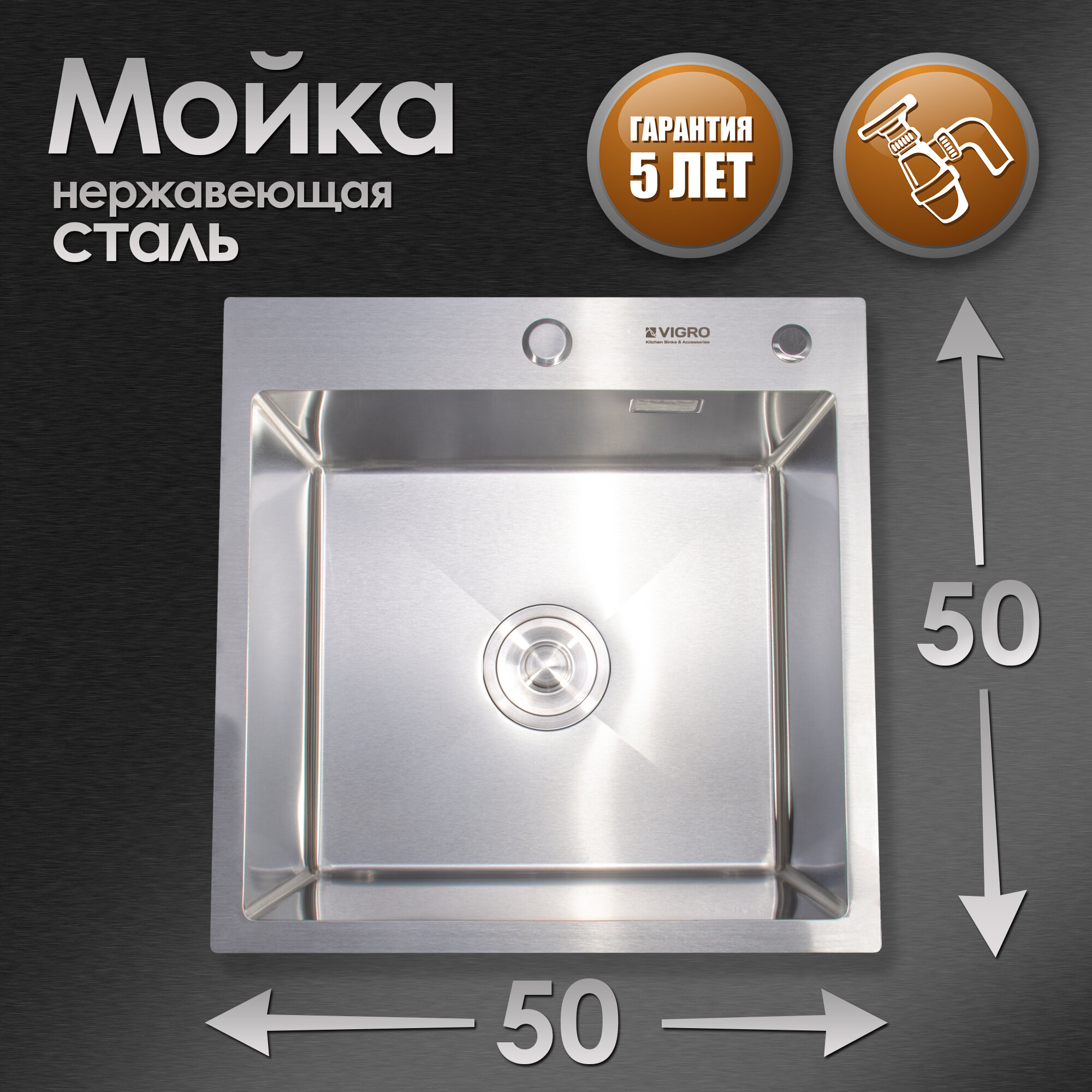 Купить Мойка для кухни VIGRO из нержавеющей стали 50х50 с сифоном, серый с доставкой по всей России. Мойка для кухни VIGRO из нержавеющей стали 50х50 с сифоном, серый: сравнение цен, характеристики, фото, актуальное наличие и цены.