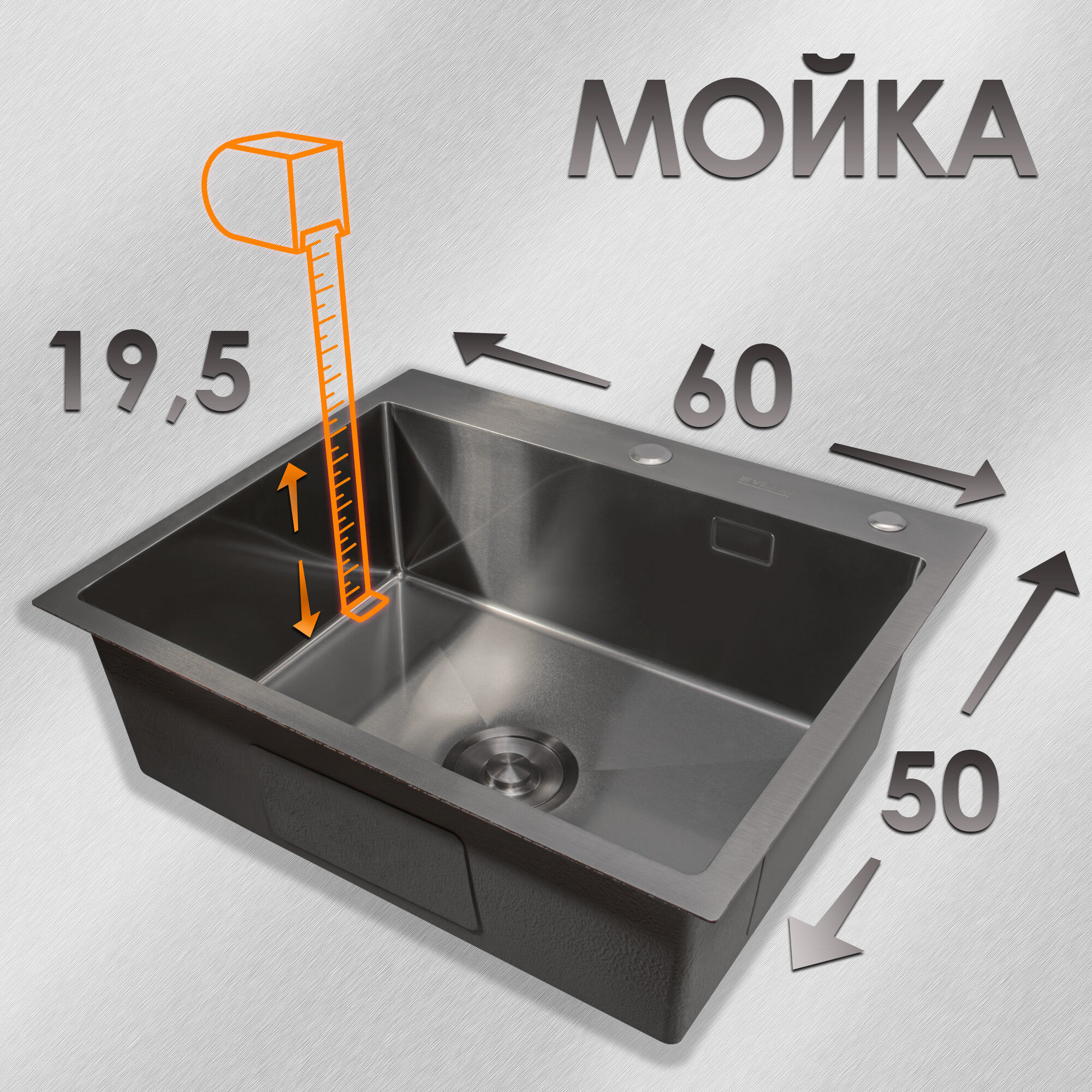 Мойка для кухни VIGRO из нержавеющей стали (50*60 см) с сифоном в черном цвете - стильный и функциональный аксессуар для вашей кухни. Кухонная мойка изготовлена из нержавеющей стали, что гарантирует долговечность и надежность в использовании. Толщина металла чаши составляет 3 мм, обеспечивая прочность и устойчивость к механическим повреждениям.