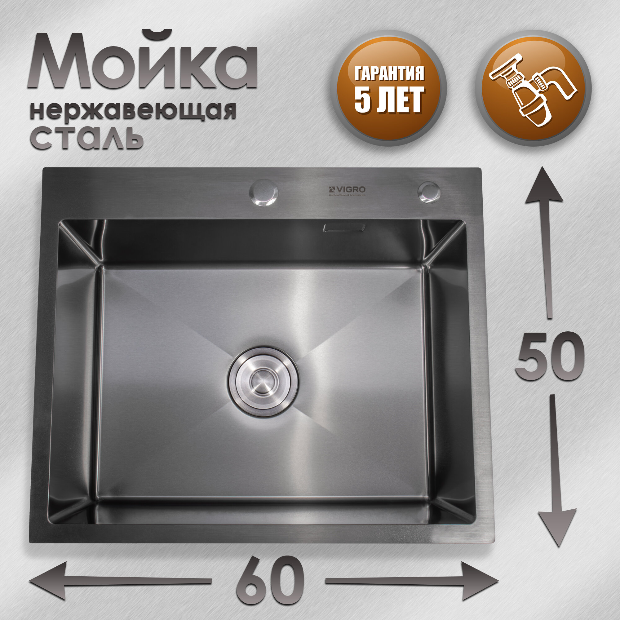 Купить Мойка для кухни VIGRO из нержавеющей стали 50х60 с сифоном, черная с доставкой по всей России. Мойка для кухни VIGRO из нержавеющей стали 50х60 с сифоном, черная: сравнение цен, характеристики, фото, актуальное наличие и цены.