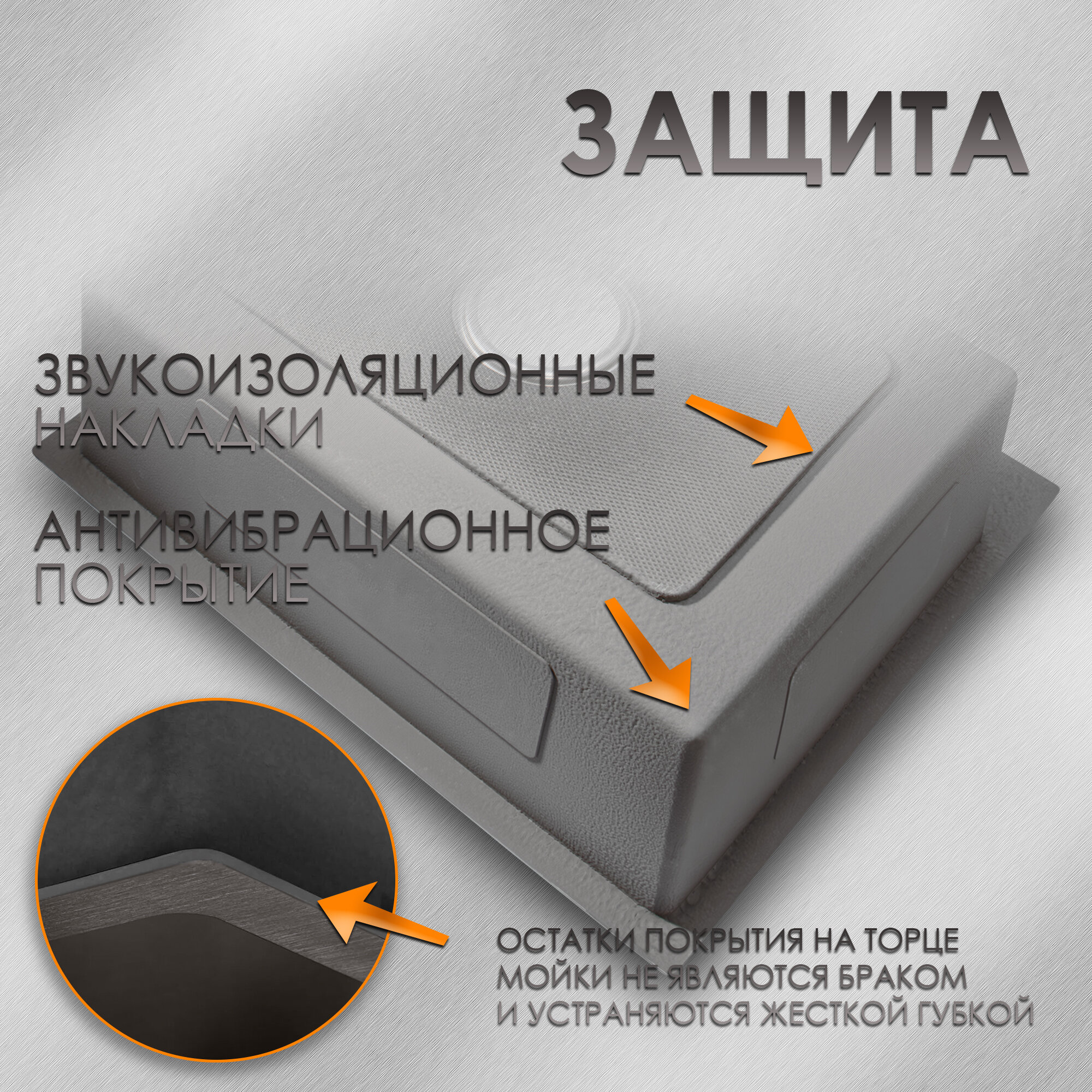 PVD-покрытие раковины для кухни предотвращает размножение бактерий и обеспечивает гигиеничность использования. PVD-покрытие - это простой уход, на нем не заметны разводы и следы от воды, все загрязнения легко можно удалить с помощью губки.