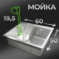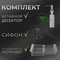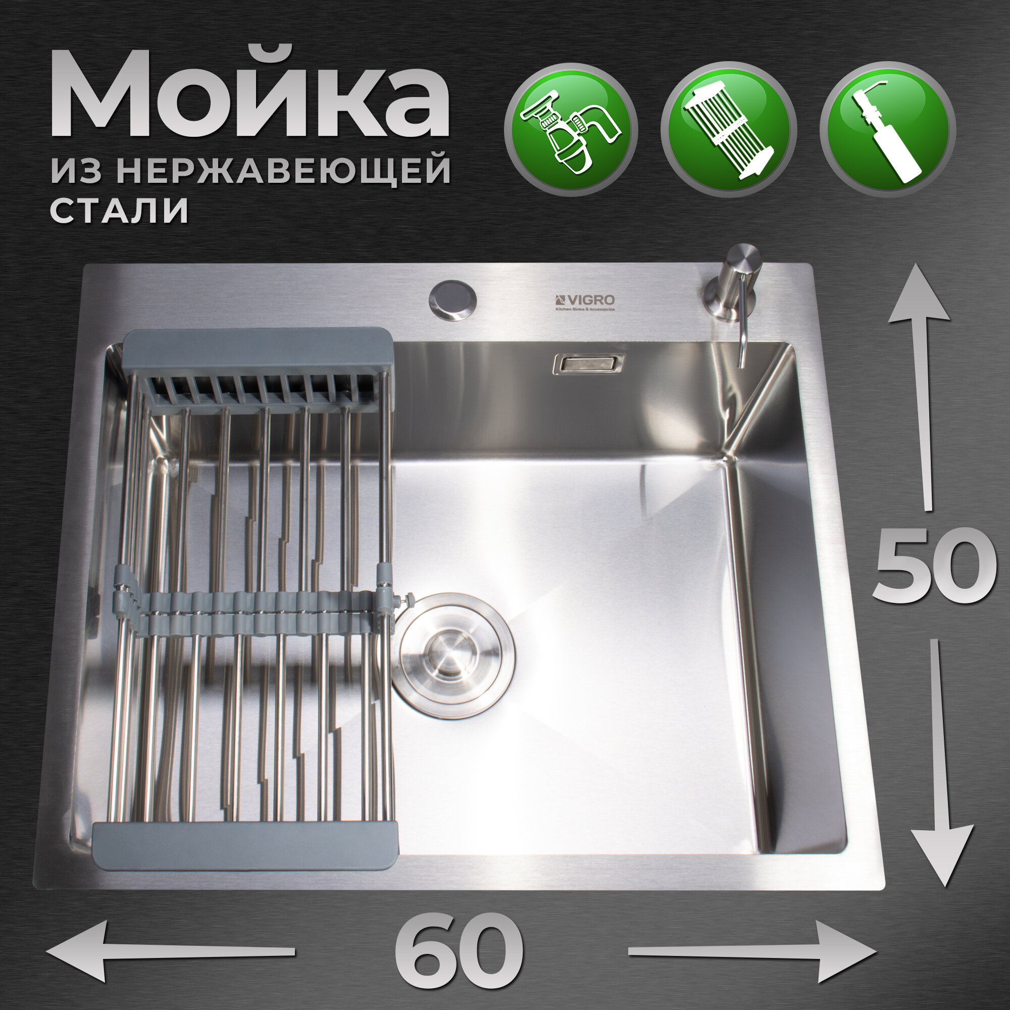 Мойка для кухни VIGRO из нержавеющей стали 50х60 с сифоном, дозатором и коландером, серый: сравнение цен, характеристики, фото, актуальное наличие и цены.