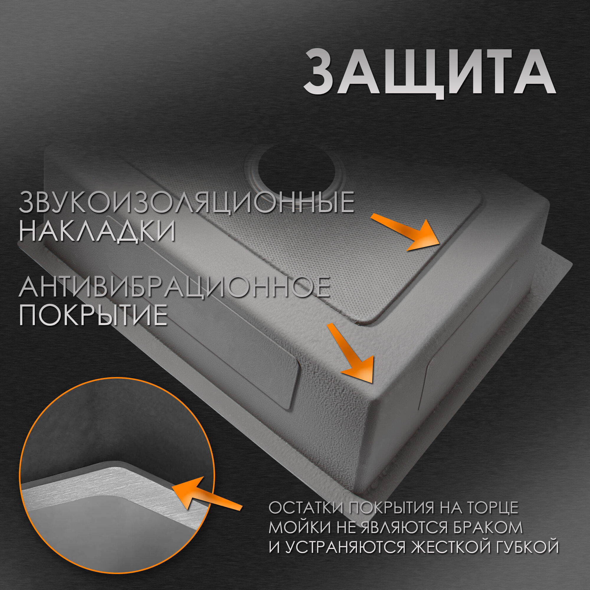 Антибактериальное покрытие раковины для кухни предотвращает размножение бактерий и обеспечивает гигиеничность использования.