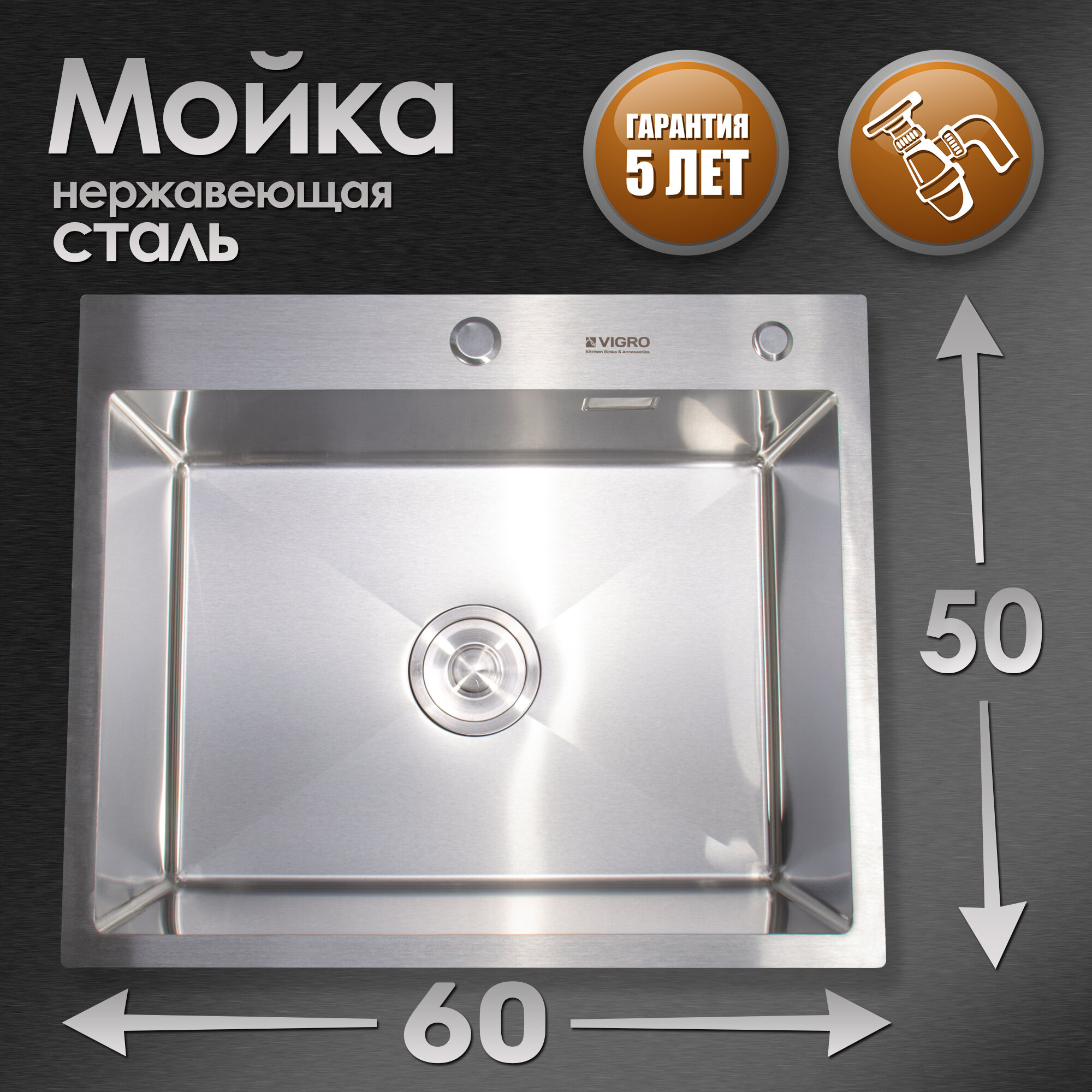 Купить Мойка для кухни VIGRO из нержавеющей стали 50х60 с сифоном, серый с доставкой по всей России. Мойка для кухни VIGRO из нержавеющей стали 50х60 с сифоном, серый: сравнение цен, характеристики, фото, актуальное наличие и цены.
