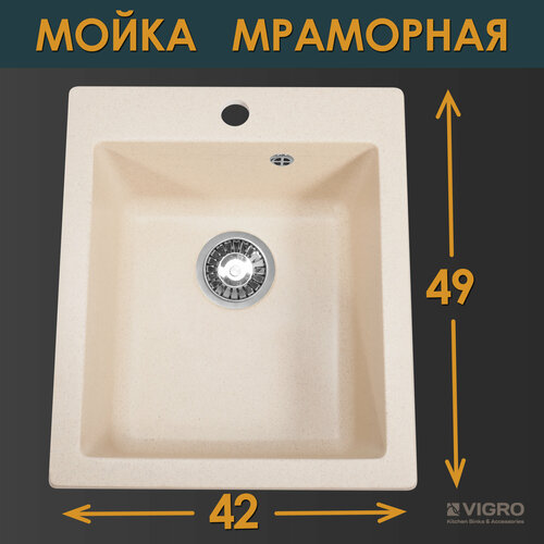 Мойка для кухни VIGRO VG205 сахара выполнена из искусственного мрамора, что обеспечивает прочность и долговечность изделия. Бежевый цвет и прямоугольная форма мойки гармонично впишутся в интерьер любой кухни.
