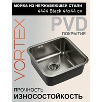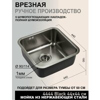 Купить Мойка для кухни врезная 4444 Black 44х44 см графит под столешницу. В комплекте сифон, арматура, перелив с доставкой по всей России.
