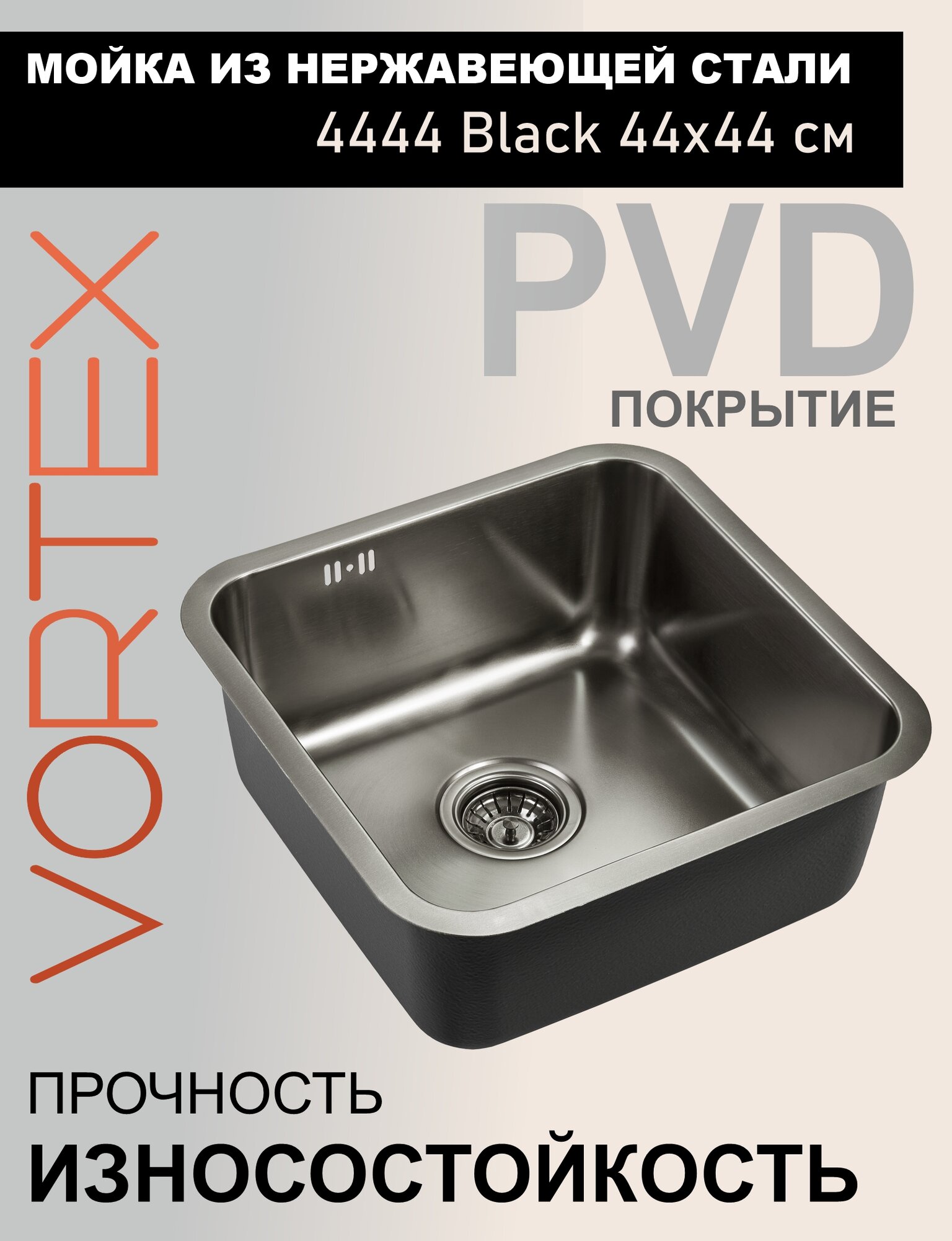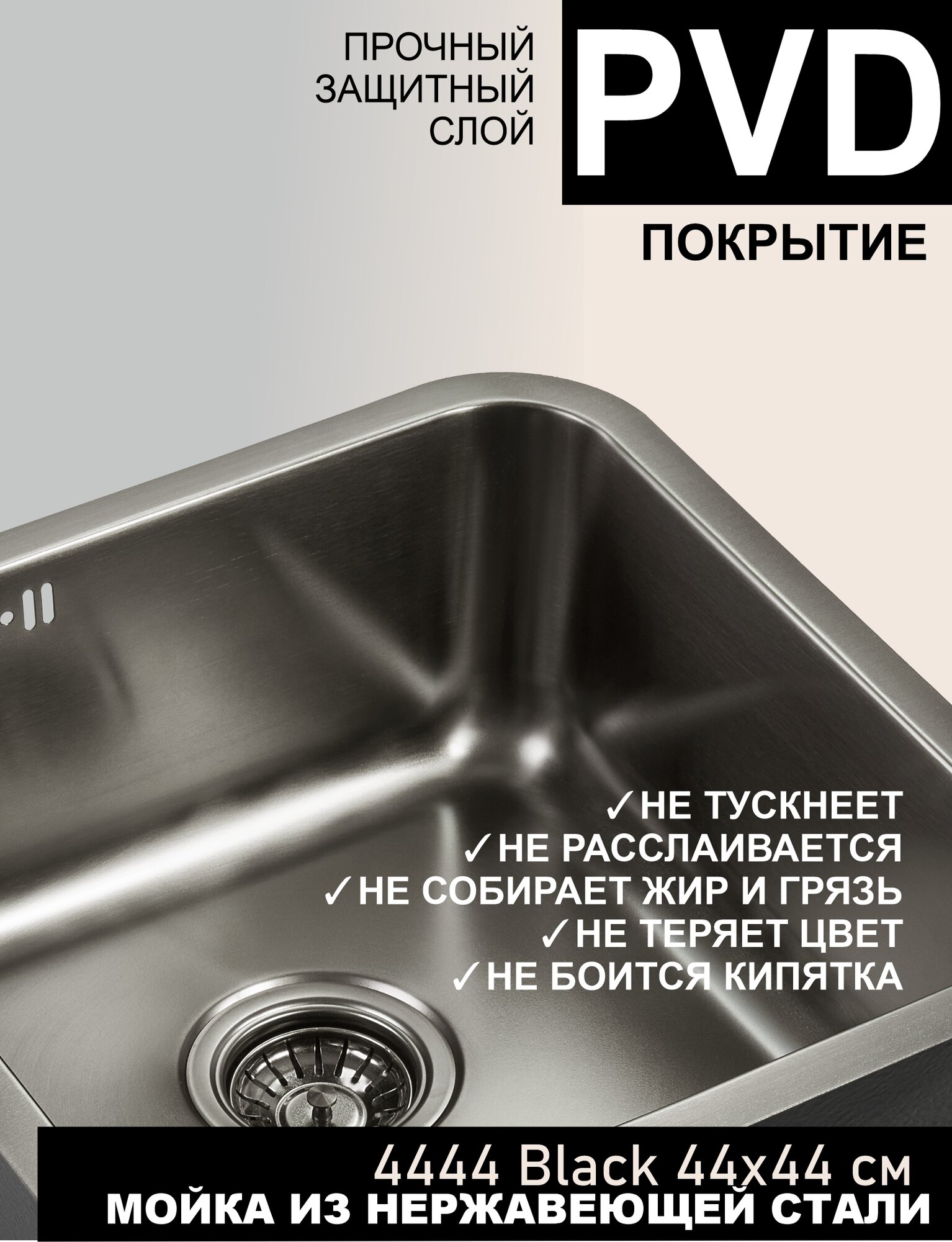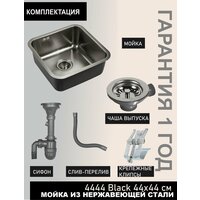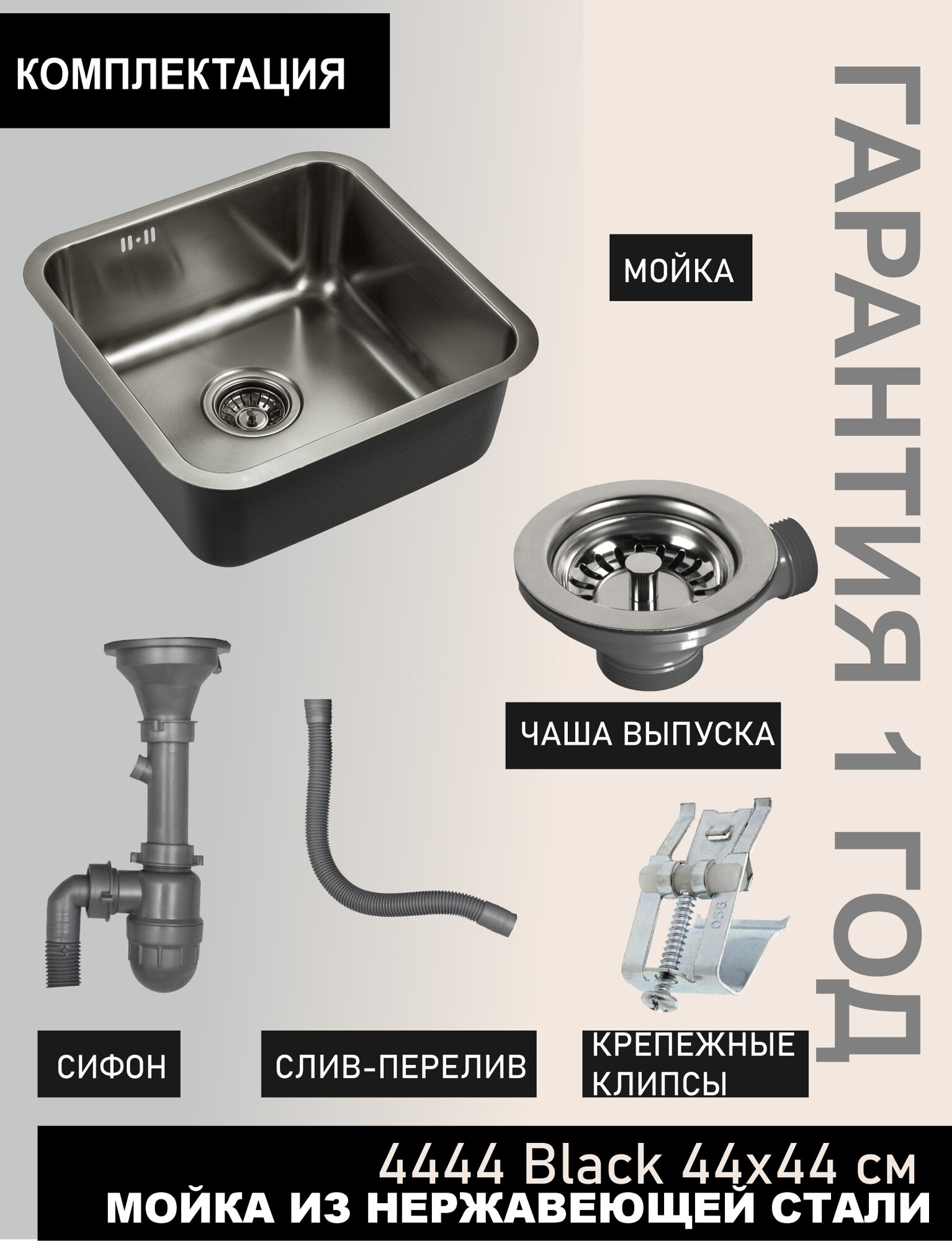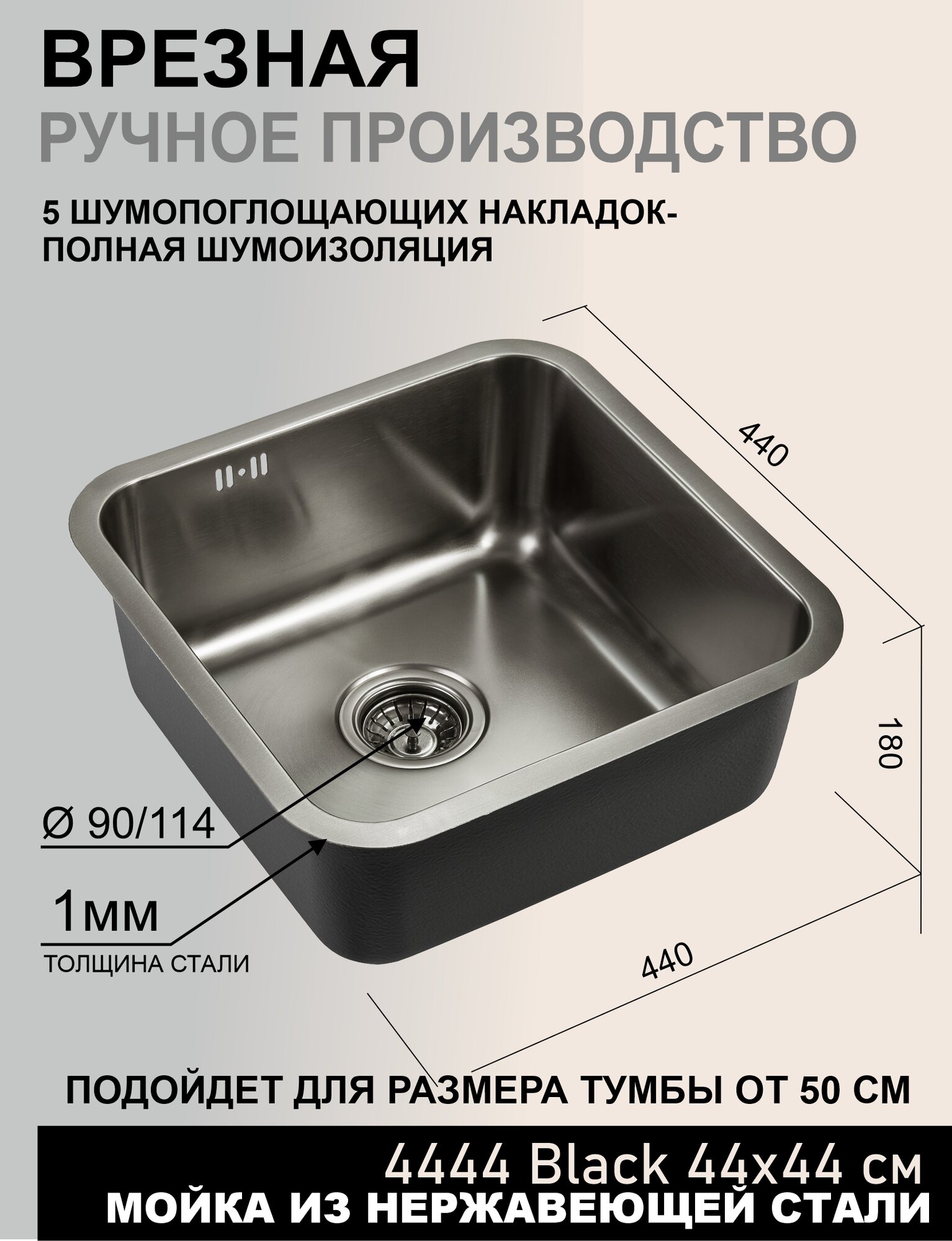 Мойка для кухни врезная 4444 Black 44х44 см графит под столешницу. В комплекте сифон, арматура, перелив: сравнение цен, характеристики, фото, актуальное наличие и цены.