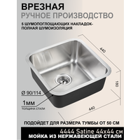 Купить Мойка для кухни врезная 44х44 см 4444 Satin сатин под столешницу. В комплекте сифон, арматура, перелив с доставкой по всей России. Мойка для кухни врезная 44х44 см 4444 Satin сатин под столешницу. В комплекте сифон, арматура, перелив: сравнение цен, характеристики, фото, актуальное наличие и цены.