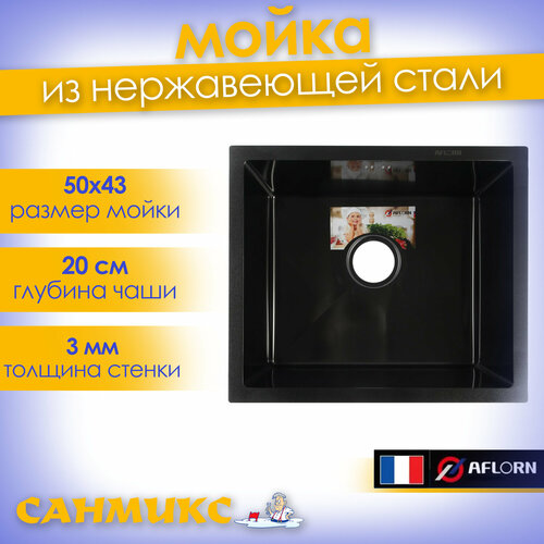 Мойка врезная нержавеющая сталь 50х43, толщ 3,0 мм, графит, премиум AF95043F