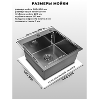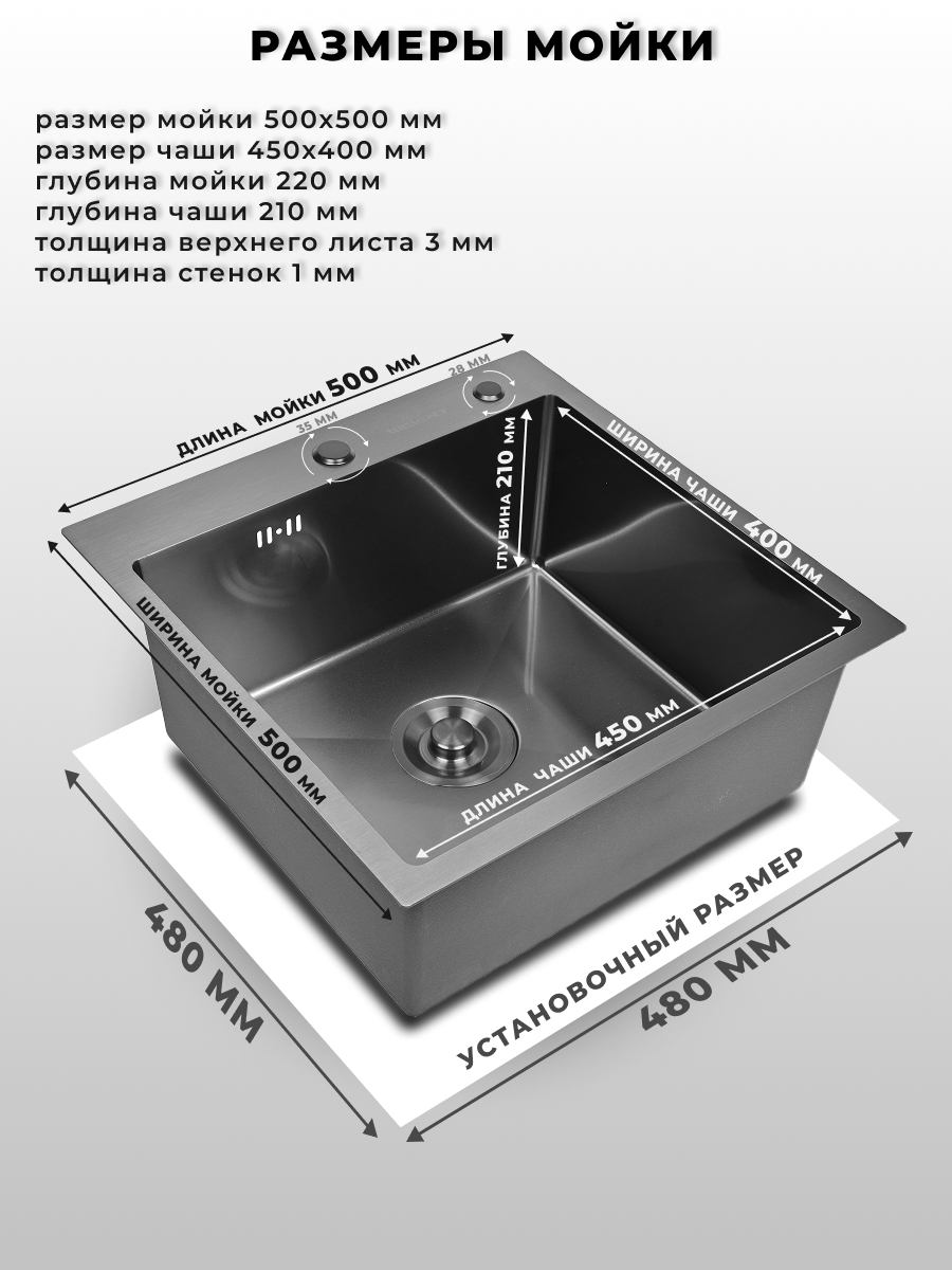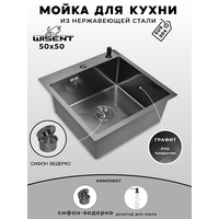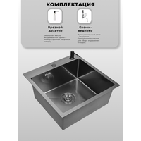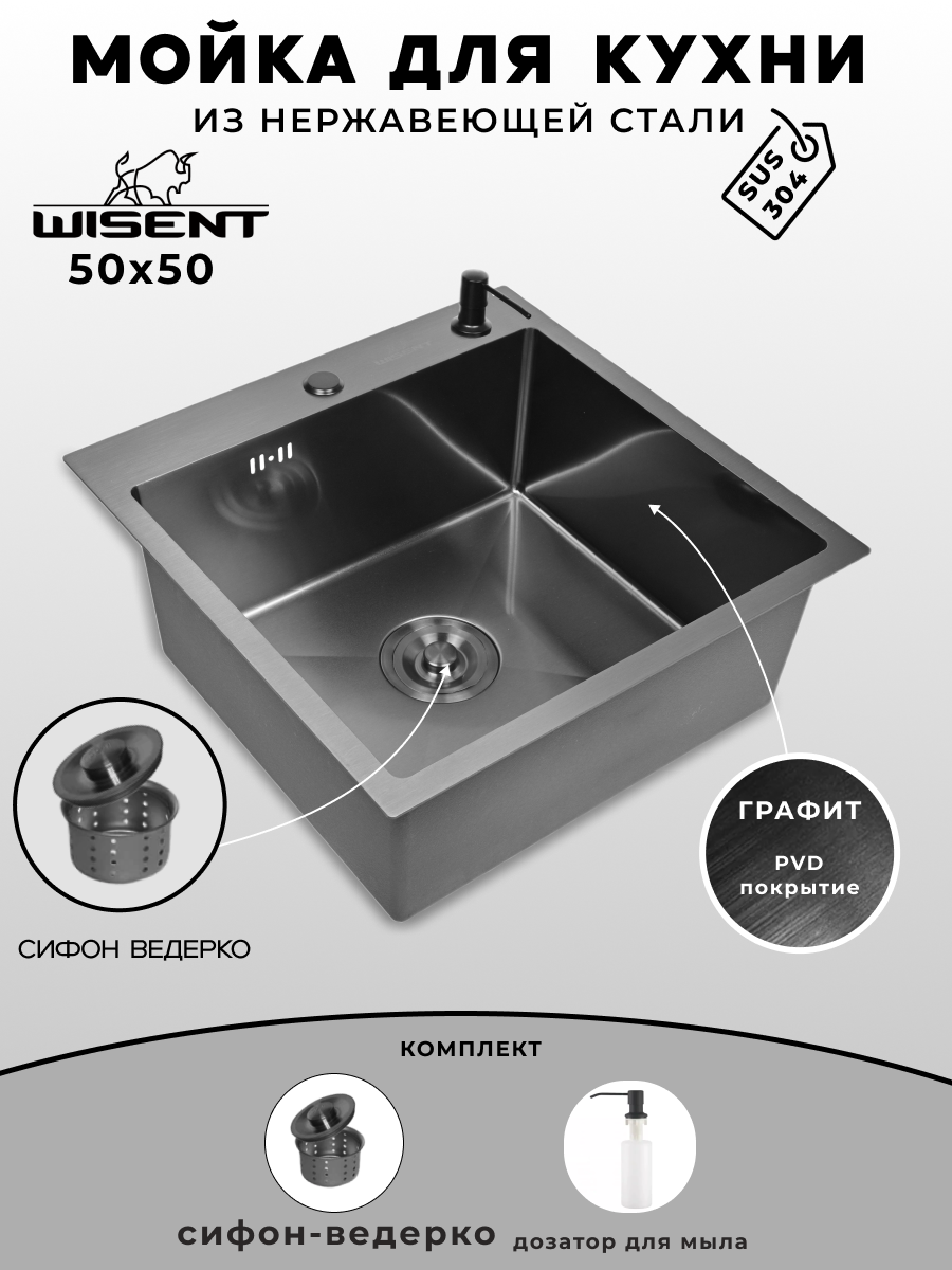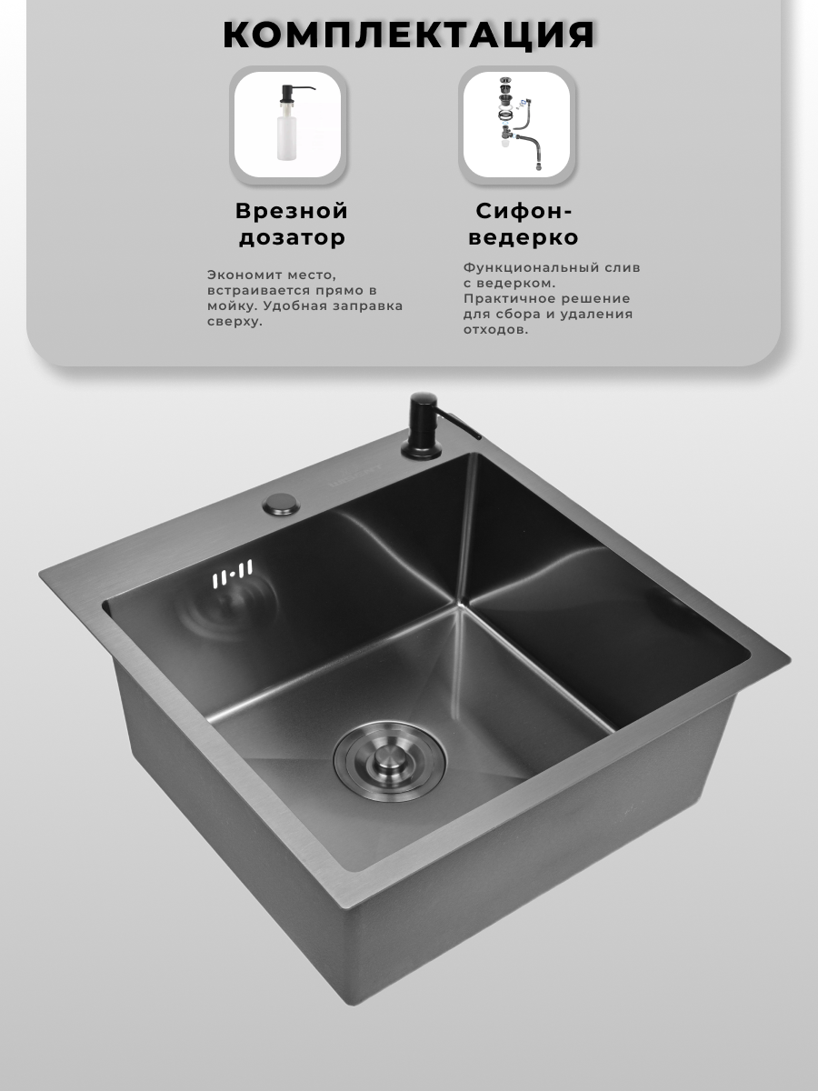 Мойка для кухни нержавеющая 50х50, с PVD покрытием графит. Сифон с ведерком, дозатор.: сравнение цен, характеристики, фото, актуальное наличие и цены.