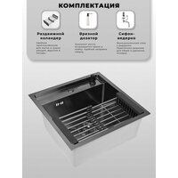 Купить Мойка для кухни нержавеющая 50х50, с PVD покрытием графит. Сифон с ведерком, дозатор, коландер. с доставкой по всей России.