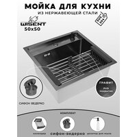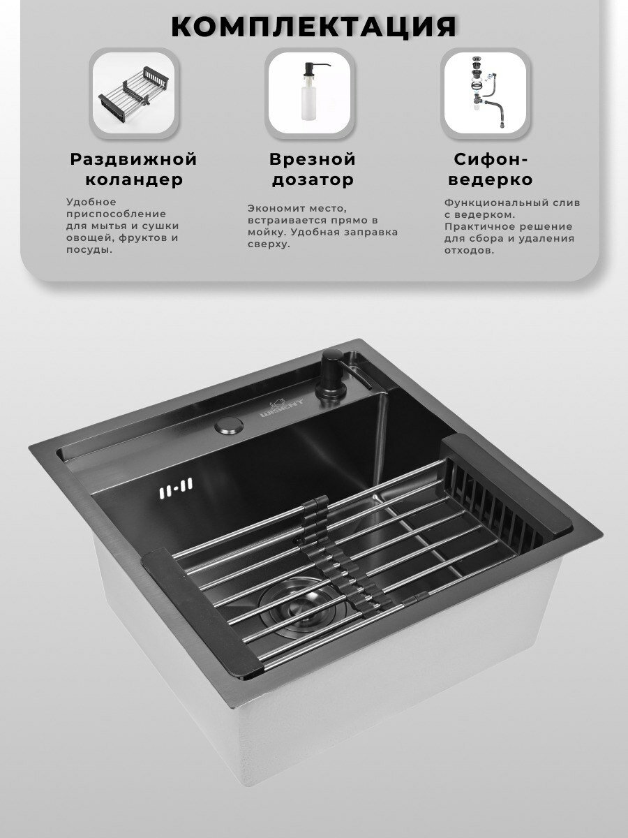Мойка для кухни нержавеющая 50х50, с PVD покрытием графит. Сифон с ведерком, дозатор, коландер.: сравнение цен, характеристики, фото, актуальное наличие и цены.
