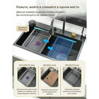 Купить Мойка для кухни WULIAN Нержавеющая сталь марки 304 многофункциональная врезная мойка водопад 75*45cm с доставкой по всей России.