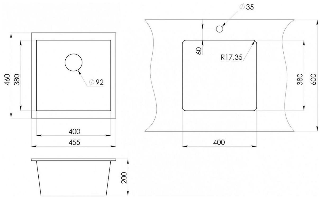 Купить Мойка EMAR, кварцевый композит, квадратная, 40х38х20 см, EMQ-1455. P гранитная Мойка, Антрацит EMQ-1455. P Антрацит с доставкой по всей России.