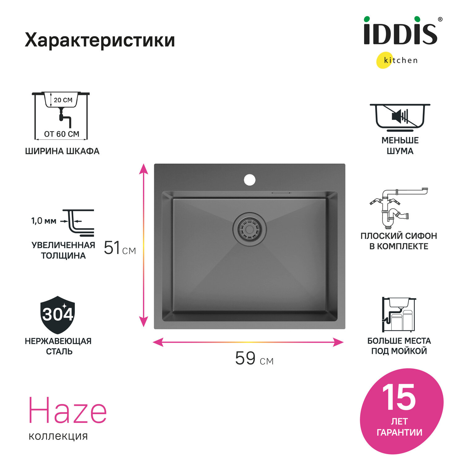 Купить Мойка IDDIS Haze HAZ59GMi77 нержавеющая сталь графит 590*510 с доставкой по всей России. Мойка IDDIS Haze HAZ59GMi77 нержавеющая сталь графит 590*510: сравнение цен, характеристики, фото, актуальное наличие и цены.