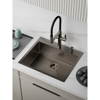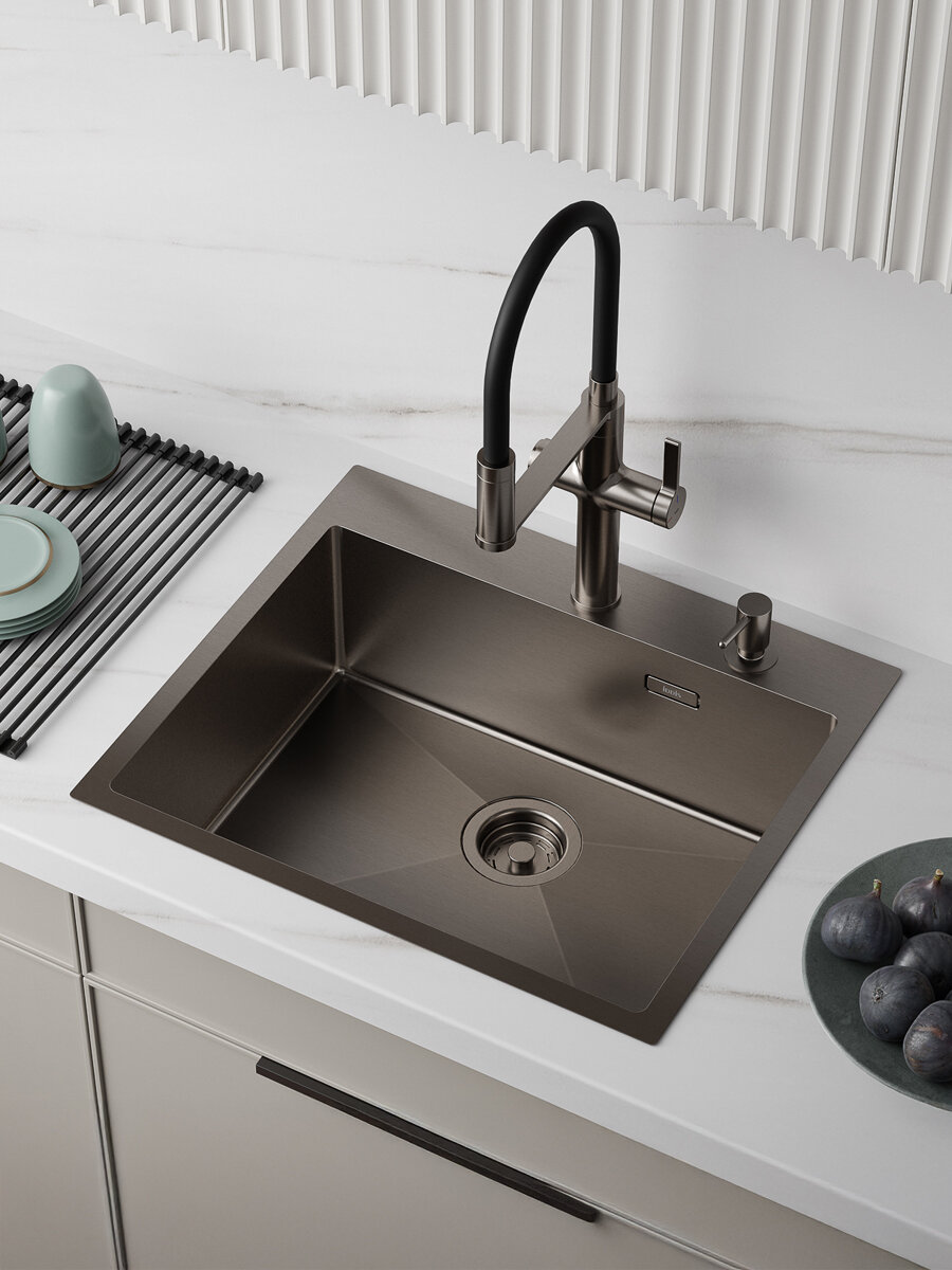 Мойка Haze отличается современным дизайном и ручным методом производства, что позволяет добиться идеальной геометрии – малый радиус скругления углов увеличивает рабочее пространство без «слепых» зон. Удобно разместить много посуды и мыть крупные предметы. Подходит для шкафа от 60 см. Глубина 20 см.