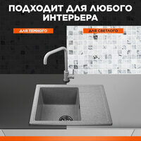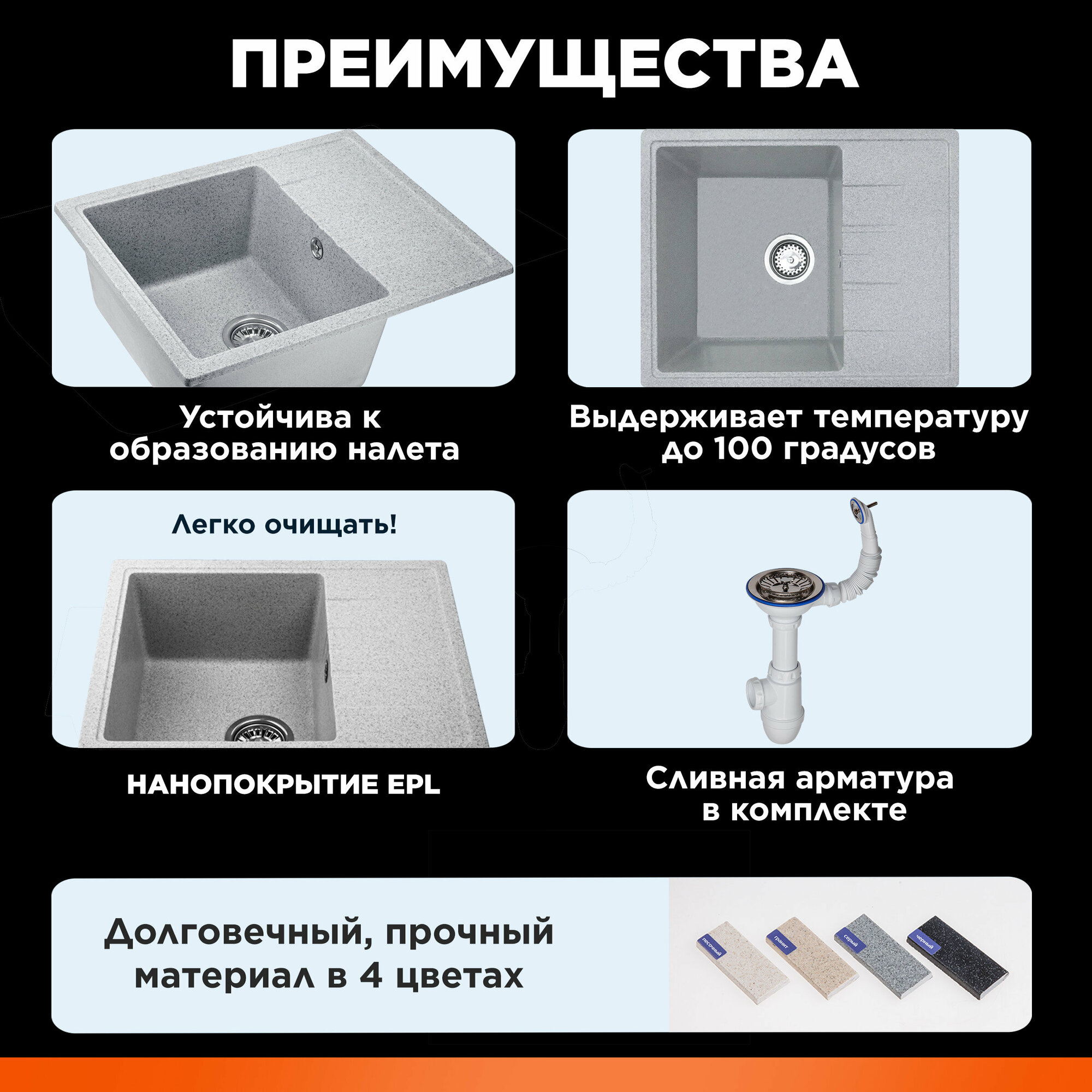 Мойка из искусственного камня AV ENGINEERING Platinum серый (AV765495PGRA) подходит под любой тип интерьера, благодаря привлекательному внешнему виду. Мояка устойчива к механическим повреждениям и перепадам температур. Долговечность рабочей поверхности благодаря защитному слою, срок эксплуатации не менее десяти лет, при бережном уходе за изделием он увеличивается в несколько раз. Технология изготовления изделия предотвращает возникновение вредных бактерий на поверхности раковины. Кухонные мойки из кварца изготавливаются из натурального материала, поэтому они не выделяют вредные вещества в процессе эксплуатации.