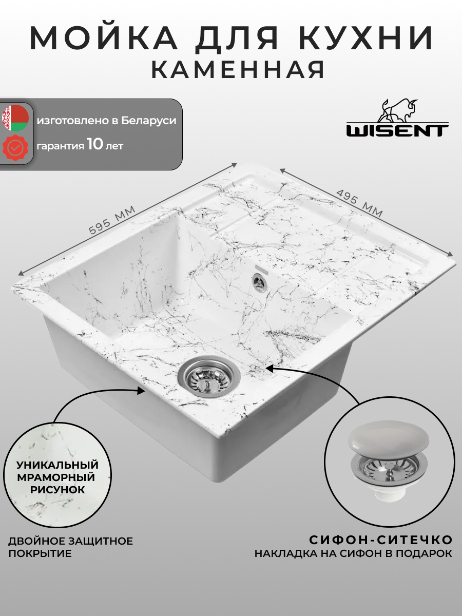 Купить Мойка из искусственного камня для кухни WISENT WB19-12 Мрамор Бело-черный (беларусь) 595*495*220 с доставкой по всей России. Мойка из искусственного камня для кухни WISENT WB19-12 Мрамор Бело-черный (беларусь) 595*495*220: сравнение цен, характеристики, фото, актуальное наличие и цены.