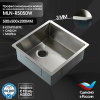 Купить Мойка из нержавеющей стали MELANA MLN-R5050W ProfLine, сатин, квадратная, врезная, подстольная, 50х50 см с доставкой по всей России.