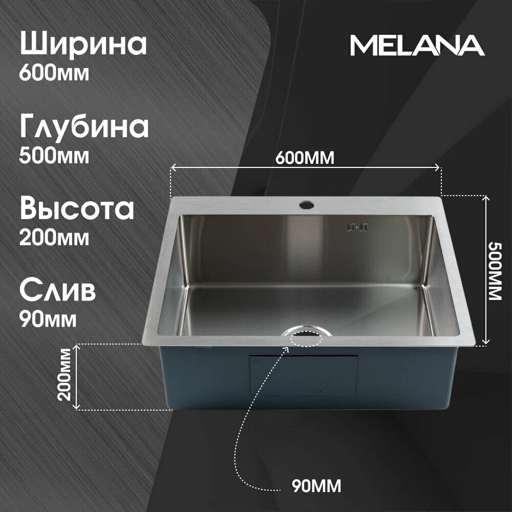 Мойка из нержавеющей стали MELANA MLN-R6050H ProfLine, сатин, прямоугольная, врезная, 60х50 см, с большой чашей и коландером: сравнение цен, характеристики, фото, актуальное наличие и цены.