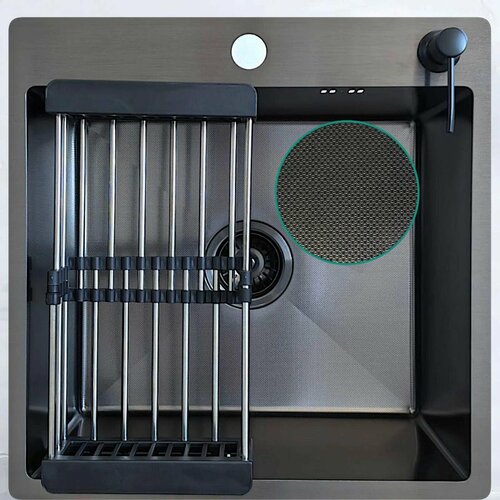 Стильная и практичная кухонная мойка VERMON размер 55X50 выполнена в прямоугольной форме, она отлично дополнит любой интерьер. Вы сможете установить её, как в уровень со столешницей, так и над, и под столешницей, а для более комфортного использования предусмотрено усиленное шум поглощающие покрытие с четырех сторон и на дне, которое значительно снижает уровень шума при сильном напоре воды. Мойка имеет специальное защитное напыление, в результате чего на поверхности образуется тонкий и прочный слой, обеспечивающий защиту поверхности от внешних воздействий и наделяющий его особо прочными характеристиками. С мойки легко удалить следы жира, грязи и разводы от воды. Мойка укомплектована в максимальной комплектации: сливная арматура, сливная корзина, врезной дозатор для жидкого мыла, решетка/коландер для овощей. Упакована кухонная мойка в нетканый мешок и индивидуальную картонную коробку.