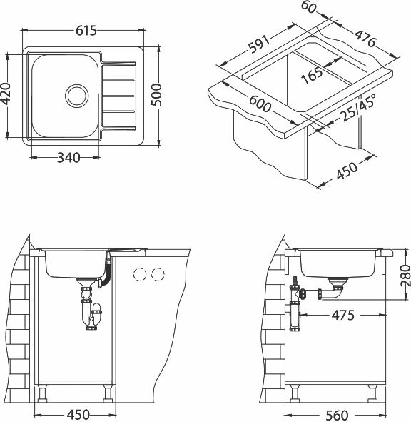 Мойка кухонная Alveus Line 110 металлическая, прямоугольная, 61×50, с крылом, матовая: сравнение цен, характеристики, фото, актуальное наличие и цены.