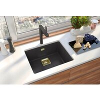Мойка кухонная Alveus Quadrix Granital 50 прямоугольная, 56x46, мойка для кухни, встраиваемая снизу, матовая, черная