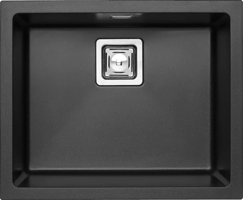 Мойка кухонная Alveus Quadrix Granital 50 прямоугольная, 56×46, мойка для кухни, встраиваемая снизу, матовая, черная