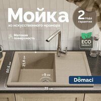 Купить Мойка кухонная Domaci Болонья М-161-004 мраморная, 75×50, прямоугольная, мойка для кухни, с крылом, бежевая, матовая с доставкой по всей России. Мойка кухонная Domaci Болонья М-161-004 мраморная, 75×50, прямоугольная, мойка для кухни, с крылом, бежевая, матовая: сравнение цен, характеристики, фото, актуальное наличие и цены.