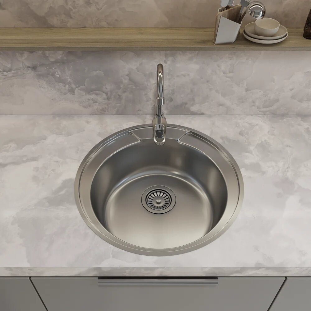 Мойка кухонная Domaci Равенна Rite DFA 500 (4) металлическая, 50×50, круглая, мойка для кухни, матовая, российская