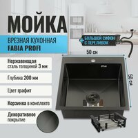 Мойка кухонная FABIA врезная, 60х50, глубина 200 мм, сифон, корзина в комплекте: сравнение цен, характеристики, фото, актуальное наличие и цены.