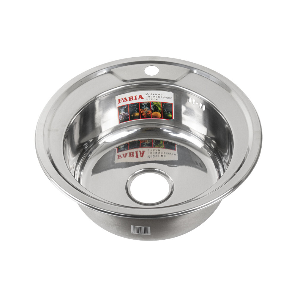 Купить Мойка кухонная FABIA врезная круглая 49 см из нержавеющей стали толщина 0,6 мм / глянцевая / глубина 160 мм + большой сифон с переливом, код: 04906 с доставкой по всей России.